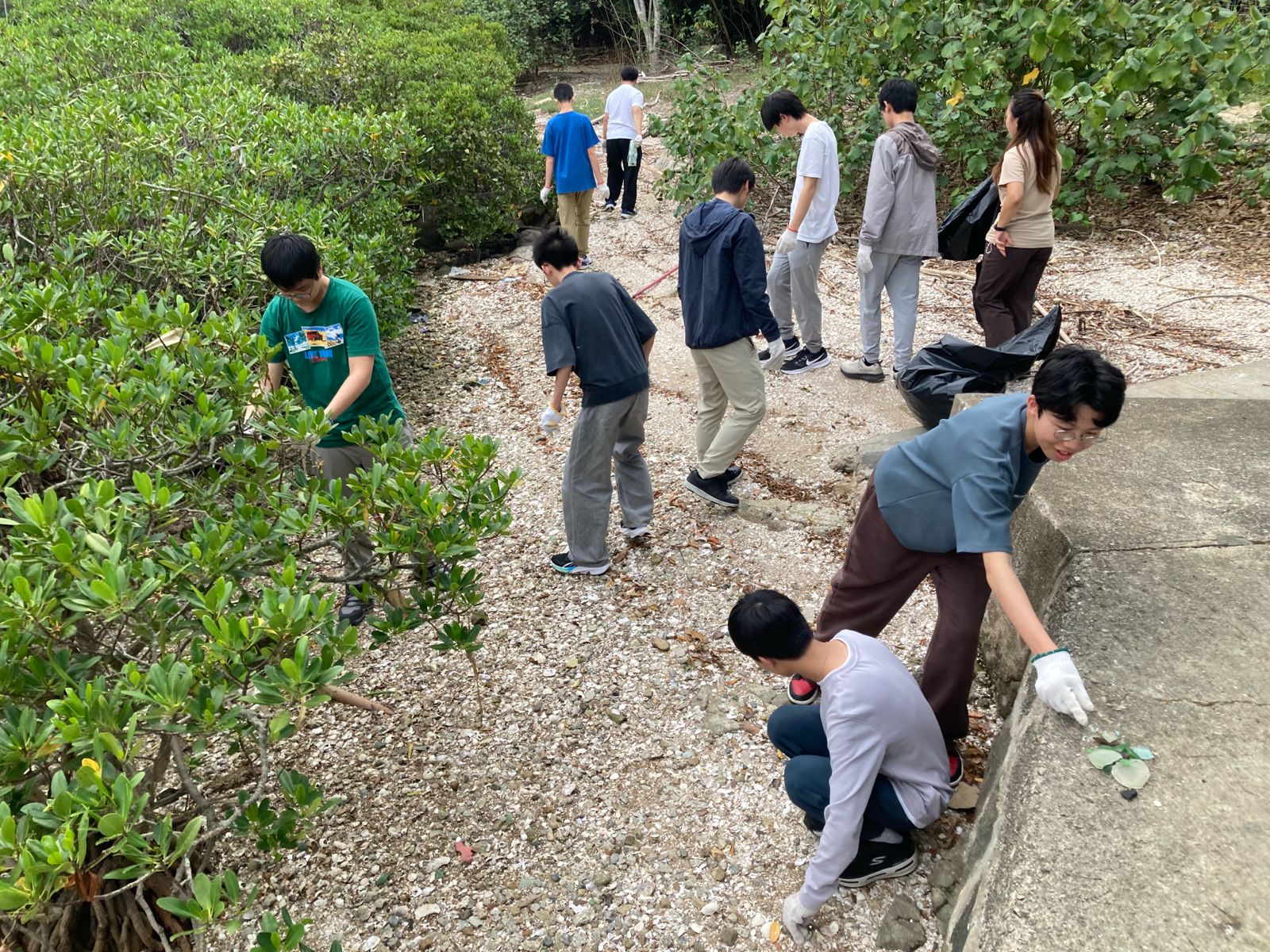 Through engaging field activities, students explored the growing problem of marine pollution. They examined microplastics in seawater, conducted a marine litter survey, and helped clean up rocky shores and mangrove habitats.